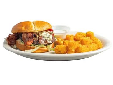 Bacon, bleu cheese crumbles, lettuce, tomato and mayo. Served With choice of side.
